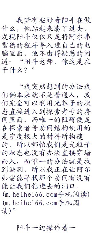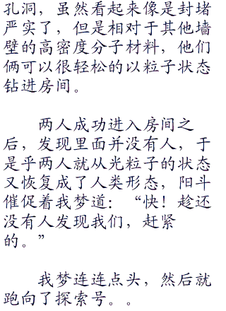 我梦的宿舍之中,阳斗偷偷摸摸的从外面跑了回来,然后一脸无语的对我梦说道。