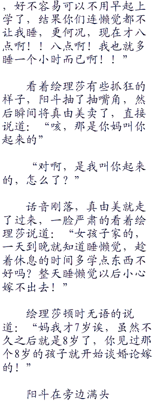 阳斗哭笑不得的摇了摇头道:“这孩子的起床气越来越大了。”