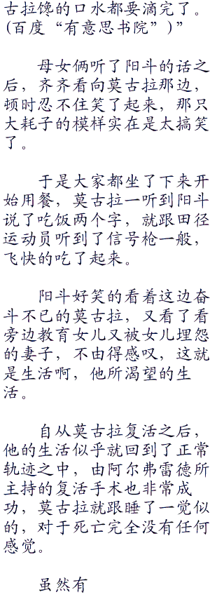 随后莫古拉的双眼就死死的盯着眼前的食物,就好像他的魂魄都被摄进去了一样,口水不知不觉的就流下来了,然而就算是这样了,他都没有动。