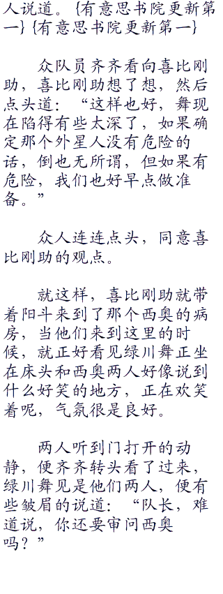 然而就在他们怀疑的时候,绿川舞忽然站起来对他们两人说道:“你们够了!!西奥不是那种人!!你们就因为他是一个外星人就这么怀疑他,你们不觉得太过分了吗?!”