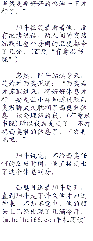 阳斗笑眯眯的转过头来看向躺在病床的西奥。