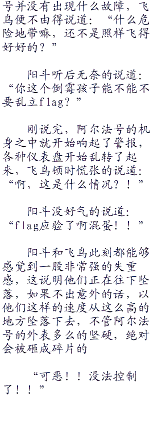 “喂,飞鸟,我可是第一次坐你开的战机,对我稍微好一点啊。”