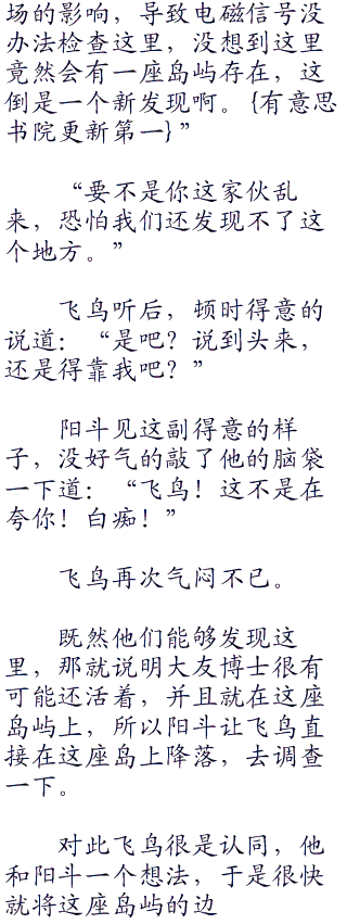 事实上,阳斗从这件事的背后察觉到了一丝不寻常的地方,第一,扎里拿地带因为受到磁场的影响所以禁止飞行和航行,大友博士不可能不知道这一点,既然他知道这一点,那为什么要去这么危险的地方?