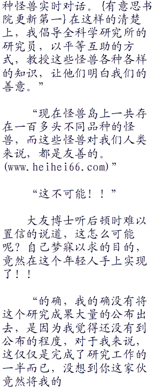 “我在笑你愚蠢,你所谓的野望,在我科学研究所已经不是一个假设了,和怪兽沟通这一条上,我们已经在做了,而且做得比你更好!”