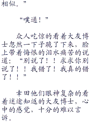 阳斗并没有对大友博士动手,而是说起了小岛右的事情,当时在小岛右求阳斗帮他这个忙,阳斗答应之后,小岛右就说过这样的事