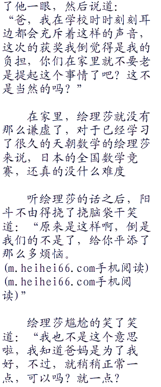 “绘理莎酱,恭喜你了,我们学校已经好多年没有拿到了全国的数学竞赛冠军了,全靠你了。”