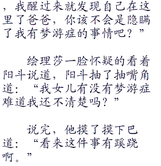 绘理莎闭着眼睛从房间里走了出来,身上还穿着小熊睡衣,她像是没有灵魂一般慢慢的走下了一楼。