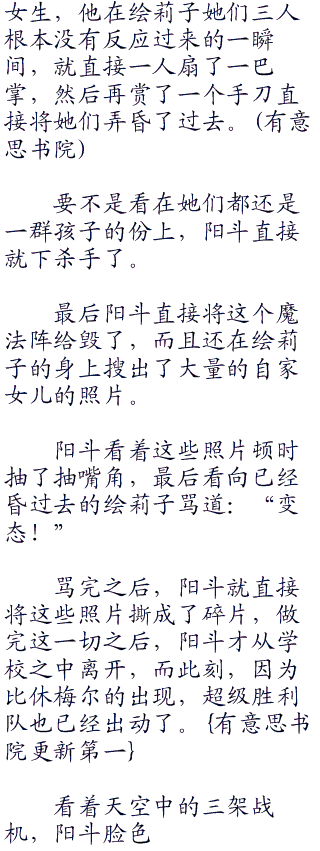 为了防止比休梅尔的逃跑,阳斗根本没有等到第二天,而是在希波利特星人跟自己报告之后,就直接来到了圣女校,根据希波利特星人的说法找到了那个女人的办公室。手机阅读更方便m..com
