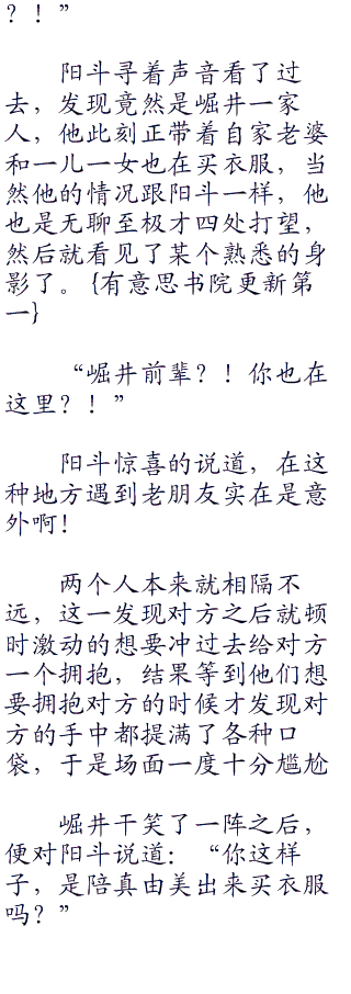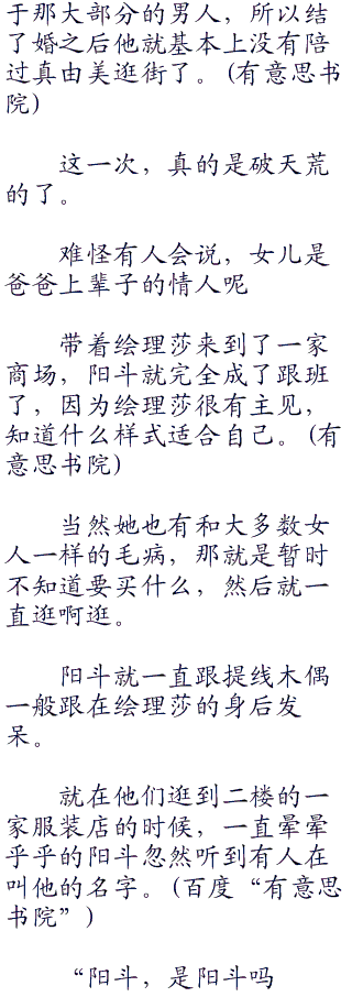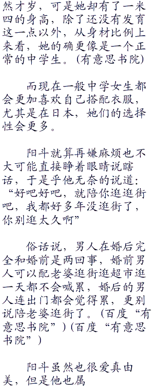 阳斗听后顿时翻了个白眼道:“你个小孩子要逛什么街?难道你还要买什么衣服吗?童装什么的,我跟你妈决定不就好了?”