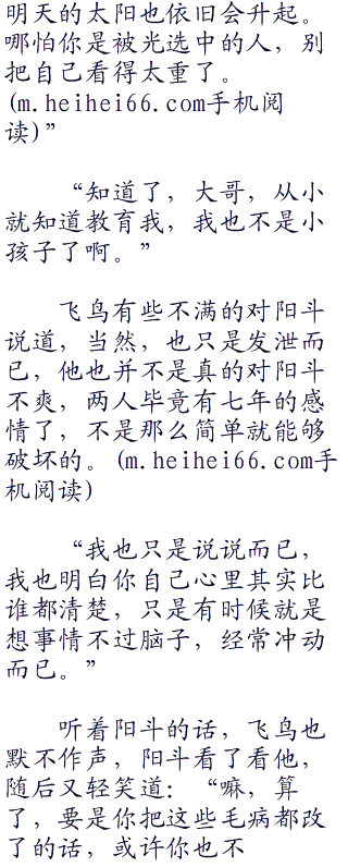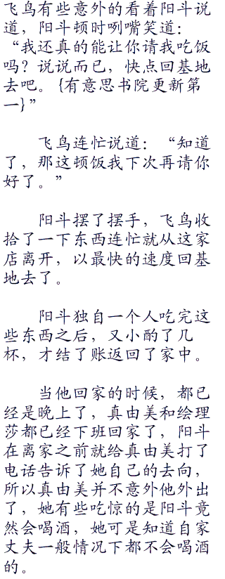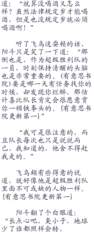 可能是喝得太急了,所以飞鸟被酒给呛到了,他咳嗽了几声之后,认真的看着阳斗道:“我明白了,阳斗大哥,我不会再迷茫了。”