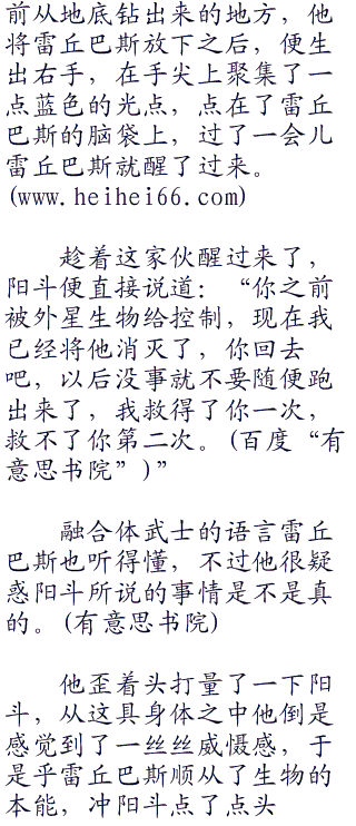 而阳斗此刻提着雷丘巴斯来到了他之
