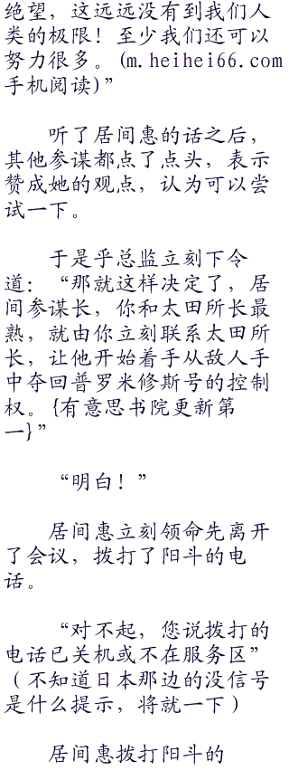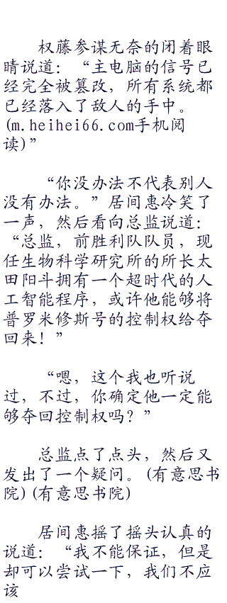 居间惠没好气的看了权藤参谋一眼,然后对他说道:“尝试过和主电脑进行连接吗?”