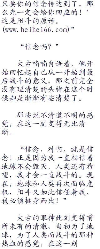 “还有,我曾经去拜访过大古,他跟我说过,神光棒已经不能够再让他变成光了,如果他对此感到迷茫不知道该如何是好的话,你就跟他说,‘所有力量的源泉都来自于信念,只要你的信念传达到了,那么光一定会给你回应的!’”