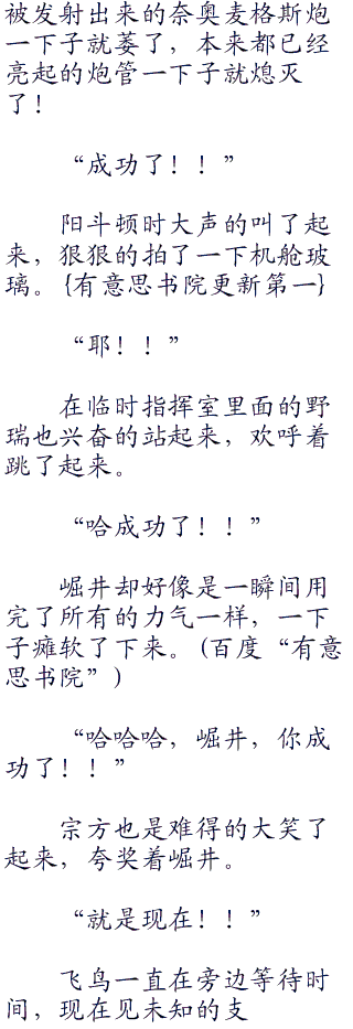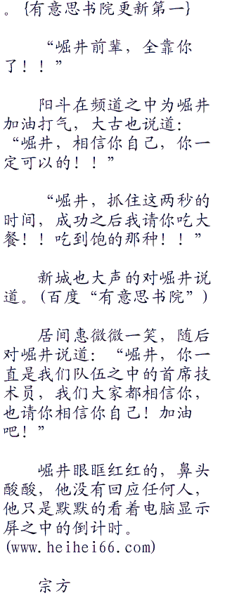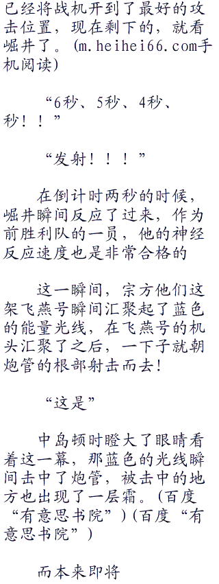 崛井在面前的电脑上调试着装载在这台飞燕号上的武器说道:“不行也得行啊,这是我们最后的希望了,大家都相信着我,我不能让大家失望!”