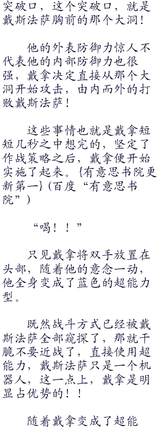 从之前的情况看,戴斯法萨自身的防御力的确惊人,哪怕是已经被戴拿在胸口上打出了一个洞,他也能给戴拿造成很大的麻烦。