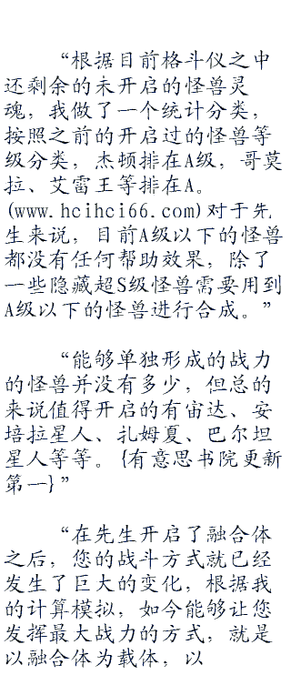 “好的,好消息就是,您的大怪兽格斗仪又开启了一个怪兽的名额。”