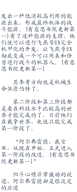 第二阶段,在找到可以稳定新型动力系统的特殊材料之后才能进行的阶段,这种阶段将开发威力更加巨大的武器,以实现碾压式的战斗。同时,将对机体的构造进行更加复杂的改造,形成一个成体的宇航飞行器,就如同一个特殊基地一样的存在。