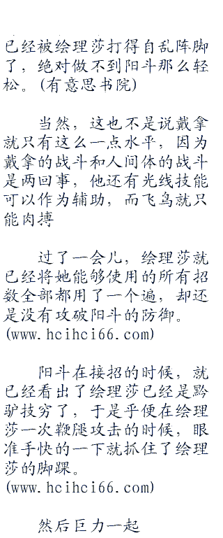可以说,虽然阳斗和绘理莎两人系统学习的武术不相同,可是战斗理念却是一脉相承的,那就是崇尚自由实用,在战斗之中固定的套路基本没有,完全是效果怎么好怎么来,所以看起来有些乱七八糟,但也让人大开眼界。
