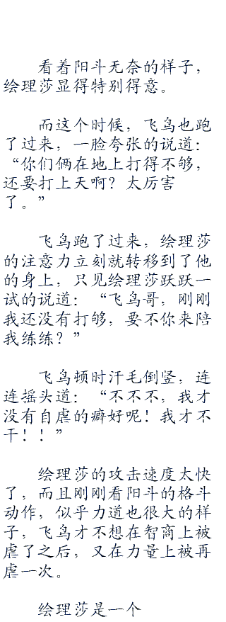 这条大长腿倒是遗传了阳斗的基因,攻得是又快又猛,别看绘理莎是一个女孩子,她腿上的力道可是相当猛的。