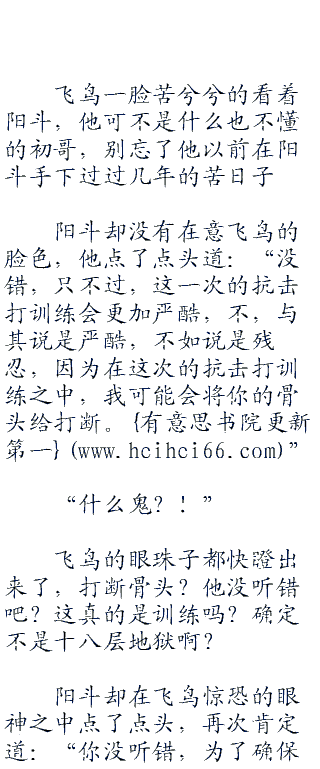 当然,阳斗还漏了一点没说,那就是在这种状态下,飞鸟消耗的体力也增加了一辈。