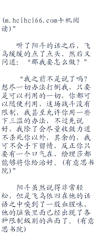 飞鸟对此表示严重的怀疑,不管是哪个时期的阳斗,在飞鸟的印象里绝对没有这么善解人意的时候