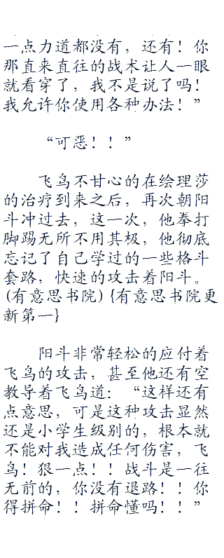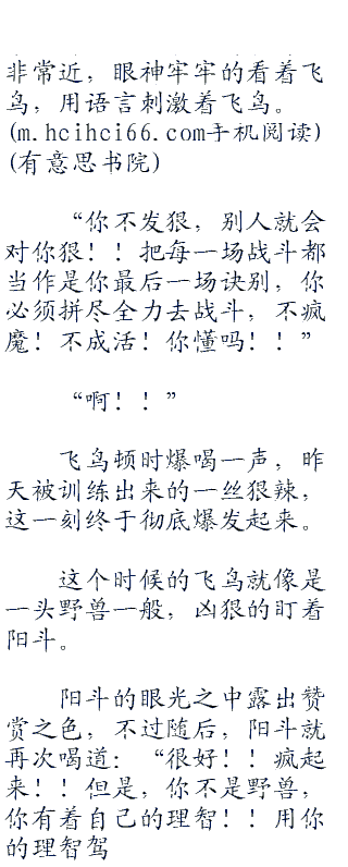 阳斗松开手之后,轻轻一笑道:“希望今天你也有这样的精神,走吧,今天的训练开始了。”