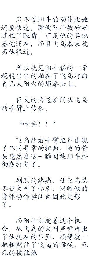 阳斗在这一天的战斗之中,被飞鸟无数次的攻击到,其实有很多次