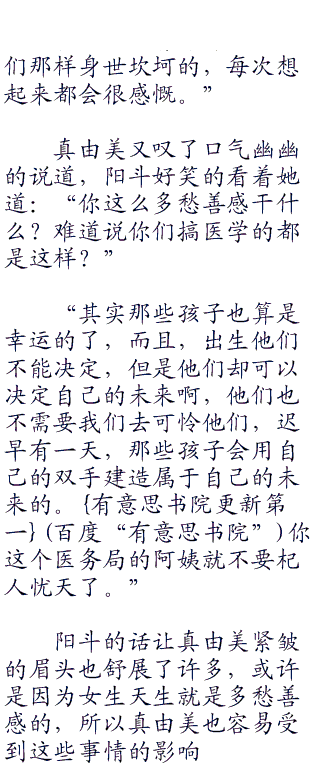 真由美顿时笑道:“你少说这些话来粉饰我,我可不是我们医务局的那些小姑娘啊。”