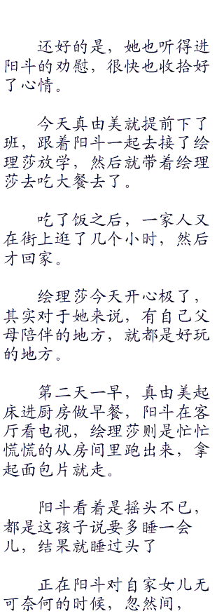 “待会儿早点下班,然后去接绘理莎,之后咱们就去吃大餐!”阳斗笑着对真由美说着待会儿的安排。