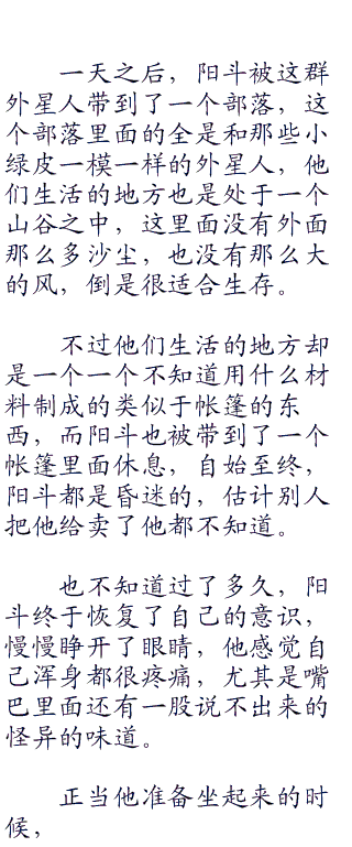站在一处高高的沙丘上,眺望着远方,阳斗企图发现一块有文明痕迹的地方,因为有文明痕迹,就代表这个星球上至少有生命体。