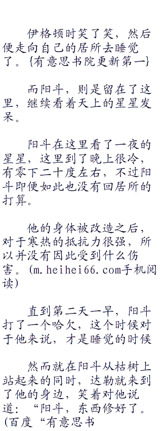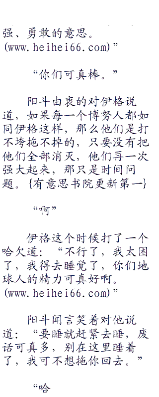 阳斗听了之后不由得轻笑着转过头对伊格说道:“你一直都是这么坚强的吗?”