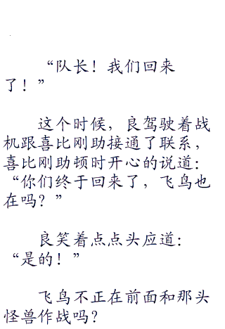 飞鸟看着手中的闪光剑,心中百感万千,他想跟良说很多话,不过,话到嘴边,却只有一句。