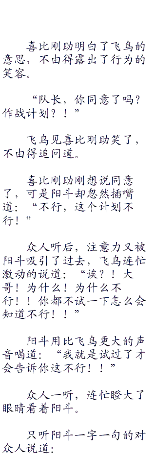 阳斗一脸严肃的看着他们俩说道:“先去跟喜比队长他们汇合再说吧。”