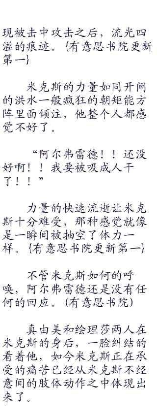 时间一分一秒的过去,矩能方阵依旧死死的拖着索菲娅。没有让他再前进一步,然而所有人都有一种度日如年的感觉。