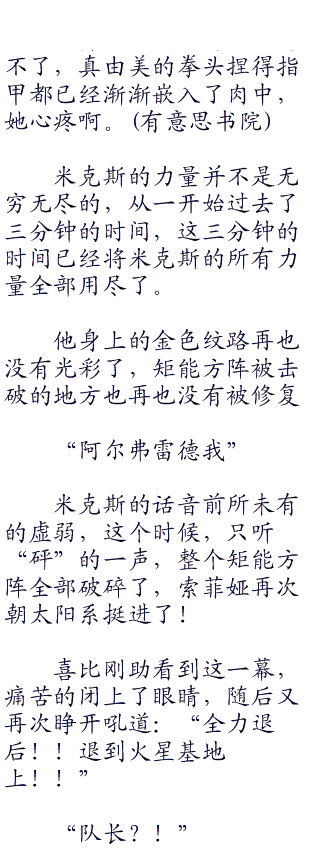 他们都知道米克斯不可能永远的将这个矩能方阵给维持下去,如果找不到的解决办法的话,米克斯最后还是会力竭,索菲娅也还是会将整个太阳系给毁灭掉。