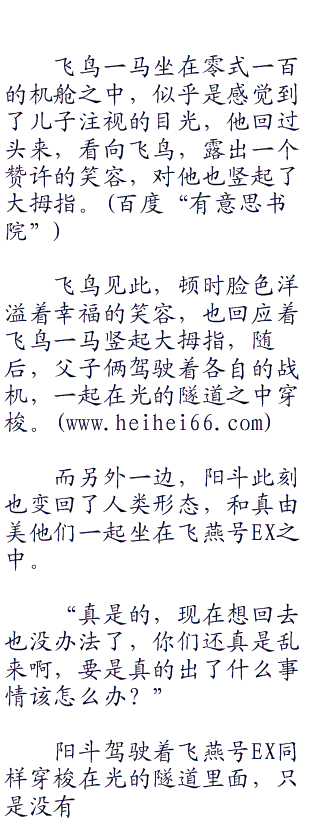 众人奇怪的看向喜比刚助,喜比刚助继续说道:“飞鸟和前辈他们一定是跟飞鸟的父亲一样,已经踏上了追寻光的步伐!他们只不过是比我们多走了几步