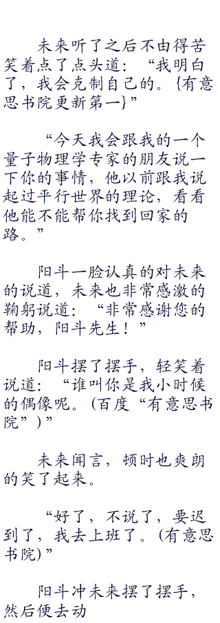 阳斗眼角发光的激动的问着未来,未来愣愣的点了点头,诧异的看着阳斗,同时心道:“怎么感觉阳斗先生像是突然变了一个人一样。首发”