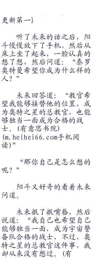 晚上,大家吃了晚饭之后,就去休息了,未来则在阳斗的卧室里看着书,而阳斗则在玩着手机。