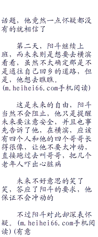 未来很激动的询问道,我梦也不疑有他,他还以为未来跟自己一样,是对未知科学充满了好奇心和探究心的年轻人呢。