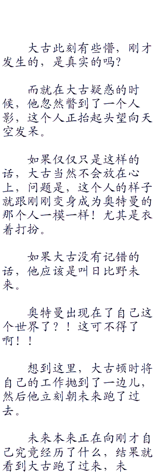 大古着急的在脑海之中想着,这个时候,他小时候所看过的那些丰富的奥特曼特摄电视剧的素材成为了大古的最大倚仗。
