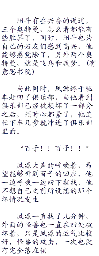 虽然怪兽的出现让他十分惊讶,然而这个时候他并没有退却,反而更加坚定了自己的决心,别忘了,他的妻子还在俱乐部呢!!