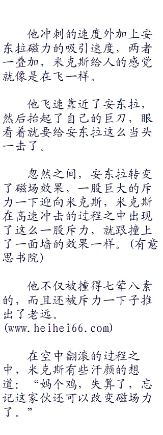 米克斯知道,安东拉这是在发挥自己的磁力能力了。