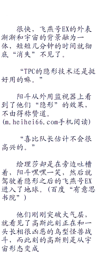 浩瀚的宇宙中,高斯奥特曼和飞燕号ex一前一后的穿梭着。手机阅读更方便m..com
