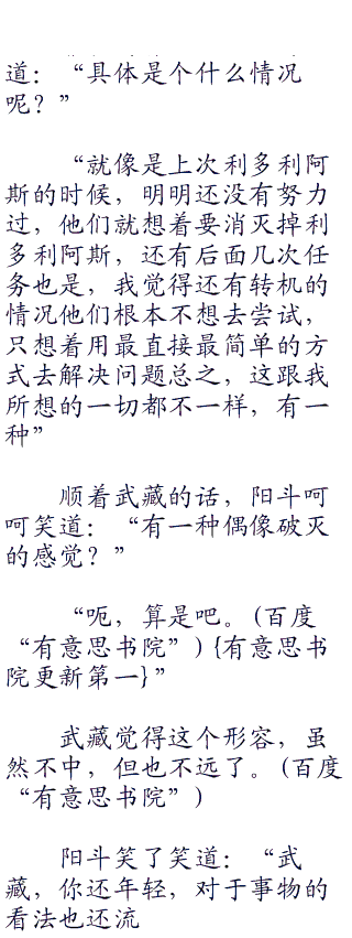 阳斗听后却是说道:“好了,武藏,你专门要我的电话应该不是问利多利阿斯的事情吧?要了解利多利阿斯的情况,你问管理官就可以了,找我,应该是有其他事情吧?”