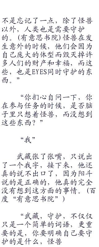 “我以前一直觉得,eyes就是保护怪兽的队伍,所以我曾经还很向往过,可是,最近的一些经历,却让我觉得,他们根本就没有尽心尽力的在保护怪兽”