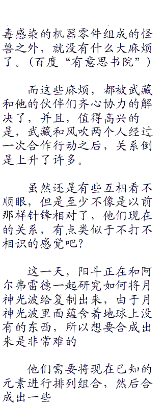 此时此刻,阳斗就穿着正式的工作服和女儿绘理莎站在实验室里,看着光谱分析仪上的一截一截的资料,听着阿尔弗雷德的解说。