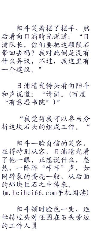 日浦晴光点了点头,然后伸手指向阳斗身后的石头说道:“这一次,就是为了这个东西而来。”