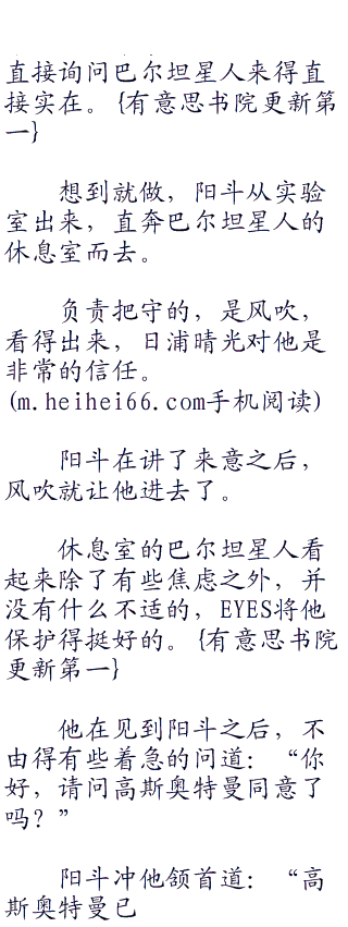 巴尔坦星人已经被eyes彻底保护了起来,基本上是除了他们几个人之外,其他人想要见到巴尔坦星人都是一件很困难的事,更别说要对巴尔坦星人做些什么了。.首发