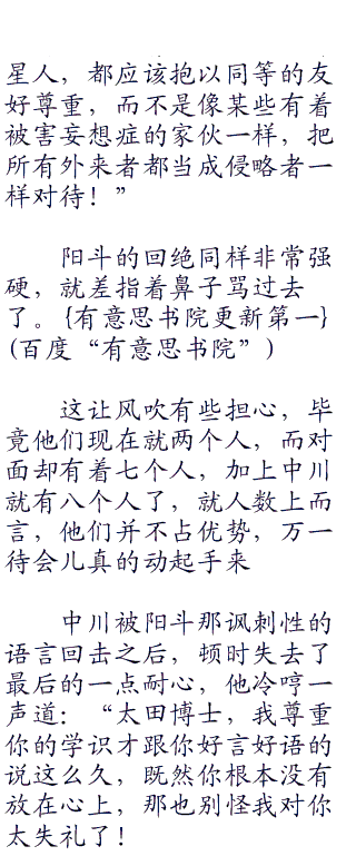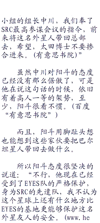 于是阳斗安慰了一下巴尔坦星人,告诉他,他们会尽快去拯救他的星球的。