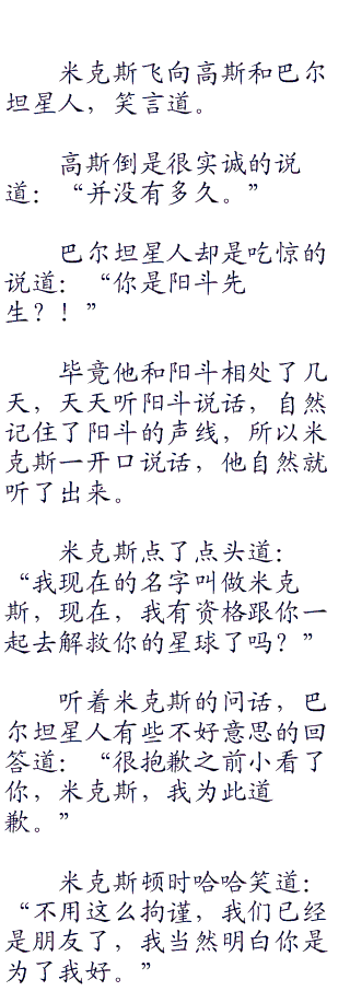 然而他们并不知道,阳斗就是仗着谁也不会宇宙通用语这个能力,和巴尔坦星人说着另外的事情呢。